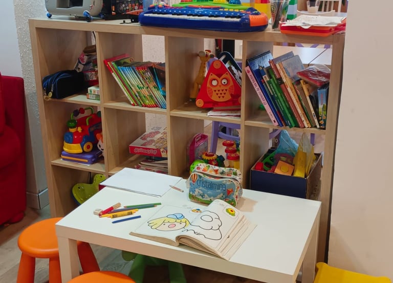 "En nuestra ludoteca, los niños pueden disfrutar de actividades como cuentos, juegos de construcción, pintura, puzzles, música y mucho más, todo en un ambiente seguro y estimulante."